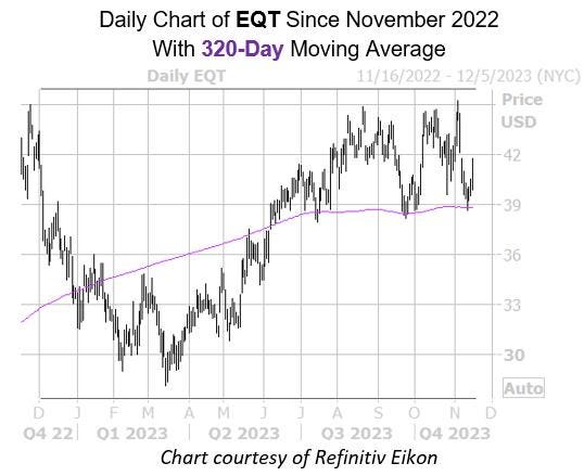 Oil name EQT Corp (EQT) pulled back after its recent Nov. 3 one-year high of $45.23, though support at the $39 level captured the dip. Plus, this price action put EQT into contact a historically bullish signal.