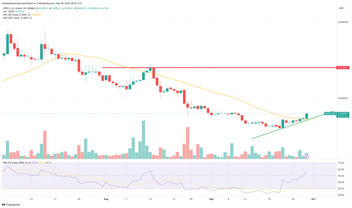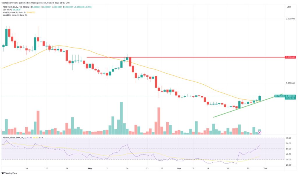 Based on this reasoning, PEPE could be expected to reach $0.0000010 in the next few weeks, with the meme token potentially capable of reaching $0.000002 by the end of the year.